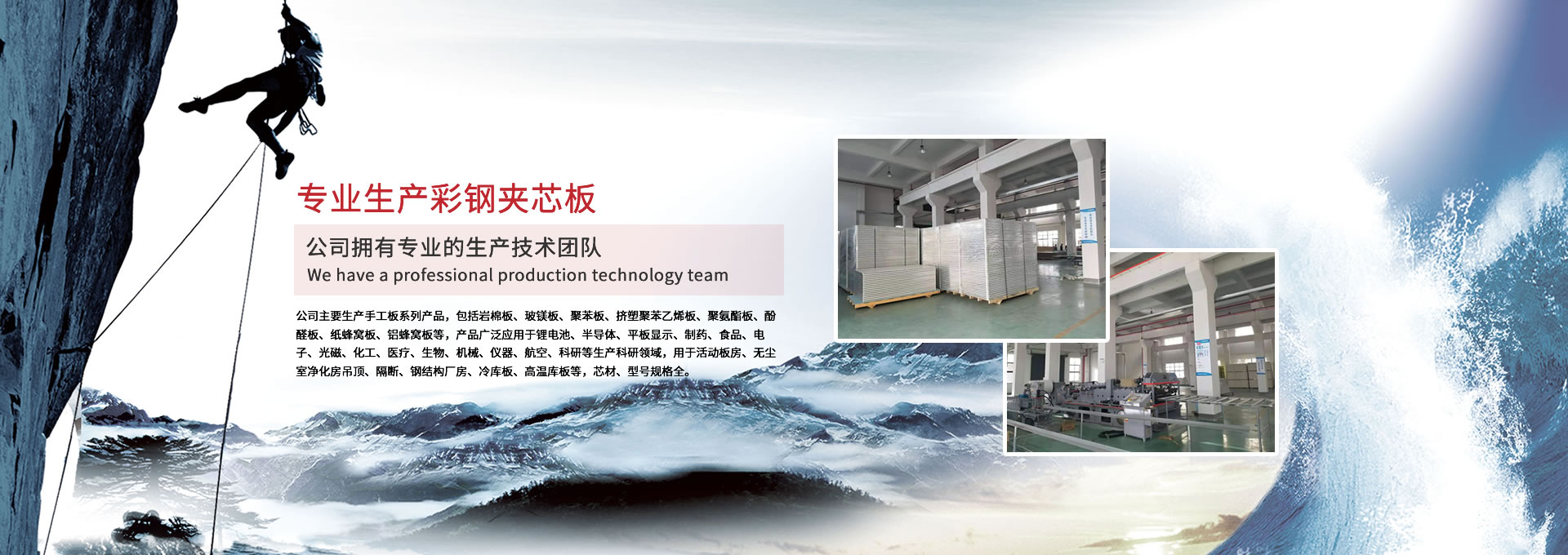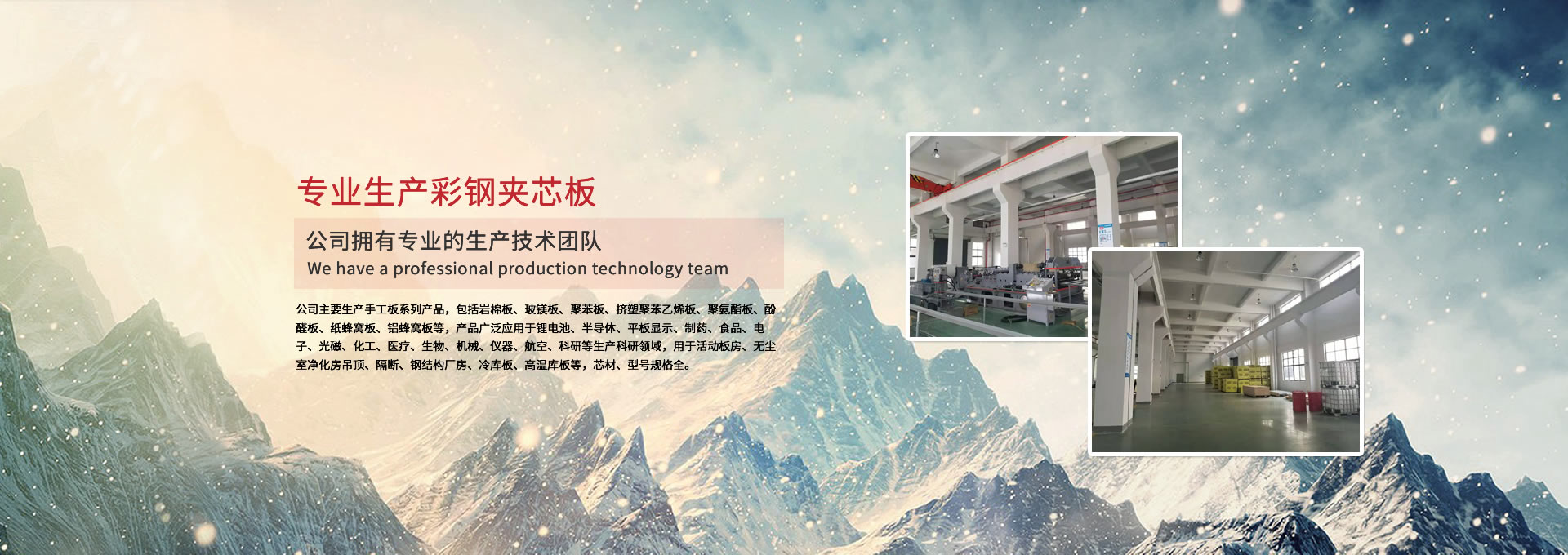 公司主要生產(chǎn)手工板系列產(chǎn)品,包括巖棉板、玻鎂板、聚苯板、擠塑聚苯乙烯板、聚氨酯板、酚醛板、紙蜂窩板、鋁蜂窩板等,產(chǎn)品廣泛應(yīng)用于鋰電池、半導(dǎo)體、平板顯示、制藥、食品、電子、光磁、化工、醫(yī)療、生物、機械、儀器、航空、科研等生產(chǎn)科研領(lǐng)域,用于活動板房、無塵室凈化房吊頂、隔斷、鋼結(jié)構(gòu)廠房、冷庫板、高溫庫板等,芯材、型號規(guī)格全。 公司擁有專業(yè)的生產(chǎn)技術(shù)團隊,周到的服務(wù)保證,以“質(zhì)量至上、信譽至上、服務(wù)至上”為宗旨,為用戶提供合格的產(chǎn)品和滿意的服務(wù),歡迎各界朋友參觀、指導(dǎo)!公司竭誠希望與各界朋友建立廣泛聯(lián)系,加強相互合作、共同發(fā)展!